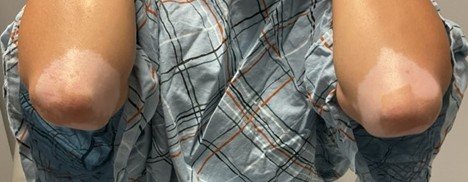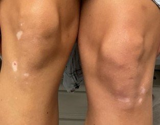A 38-year-old female with a history of hypothyroidism presents with nonscaly, asymptomatic, white macules and patches on the elbows, knees, and periorbital regions for the last 5 years. Wood’s lamp exam reveals depigmented macules, some coalescing into larger patches on the elbows, knees, and periorbital regions. She has treated her body lesions with clobetasol ointment BID alternating every other week with tacrolimus 0.1% ointment. For her face, she applies tacrolimus 0.1% ointment BID. Despite consistent usage her macules and patches have remained unchanged. She travels frequently and is looking for another topical alternative.